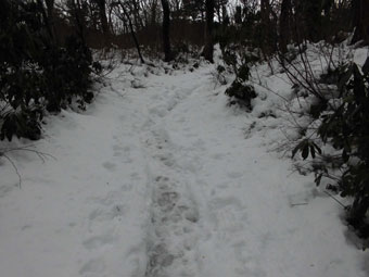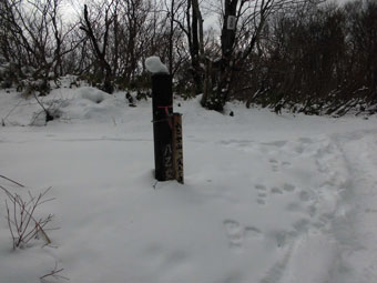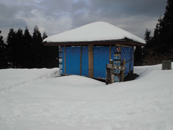 八乙女峠の東屋。いつもなら、屋根上に背丈程の雪が積もっているのに・・