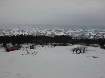 旧スキー場の上から、砺波平野を見下ろす。 |