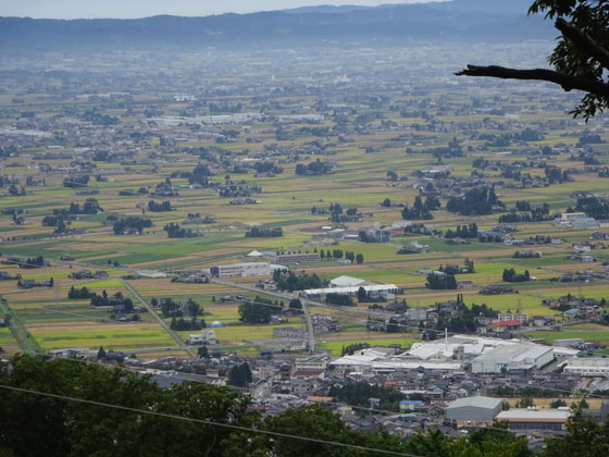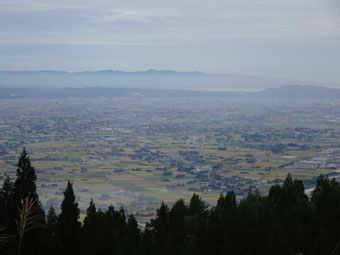 | 東屋付近から砺波の散居村を眺める。 |