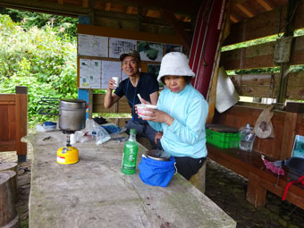 東屋で、コーヒータイム。 |