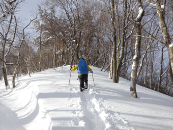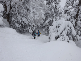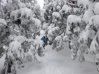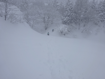 | 駐車場から、直接ゲレンデ内に突入! | 雪量が増えていく。 |