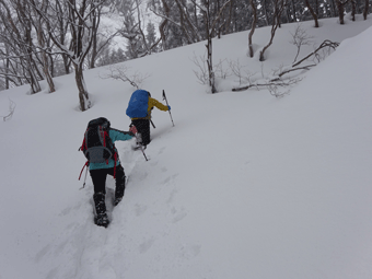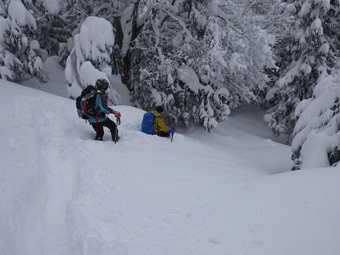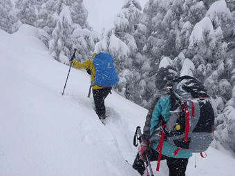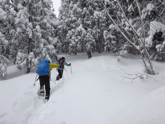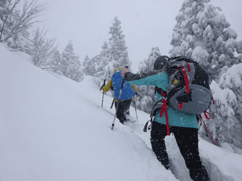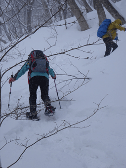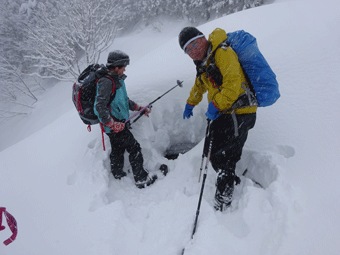 | スノーシューが壊れ、何度も周さんに助けてもらいました。 |