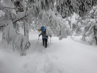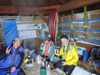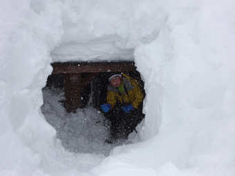 | とにかく、雪を掻き分けて・・ | 三角点で・・・ |
