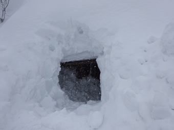 | 一時陽が差したのですが・・・ | 杉も大量の雪で重たそうだった。 |