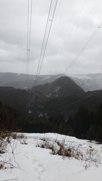 | 送電線の下を通って林道に出た。 |