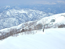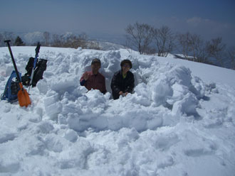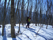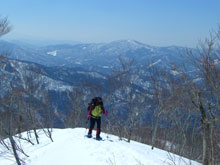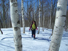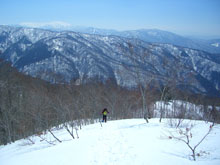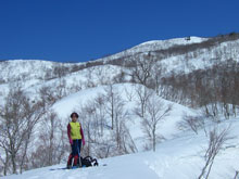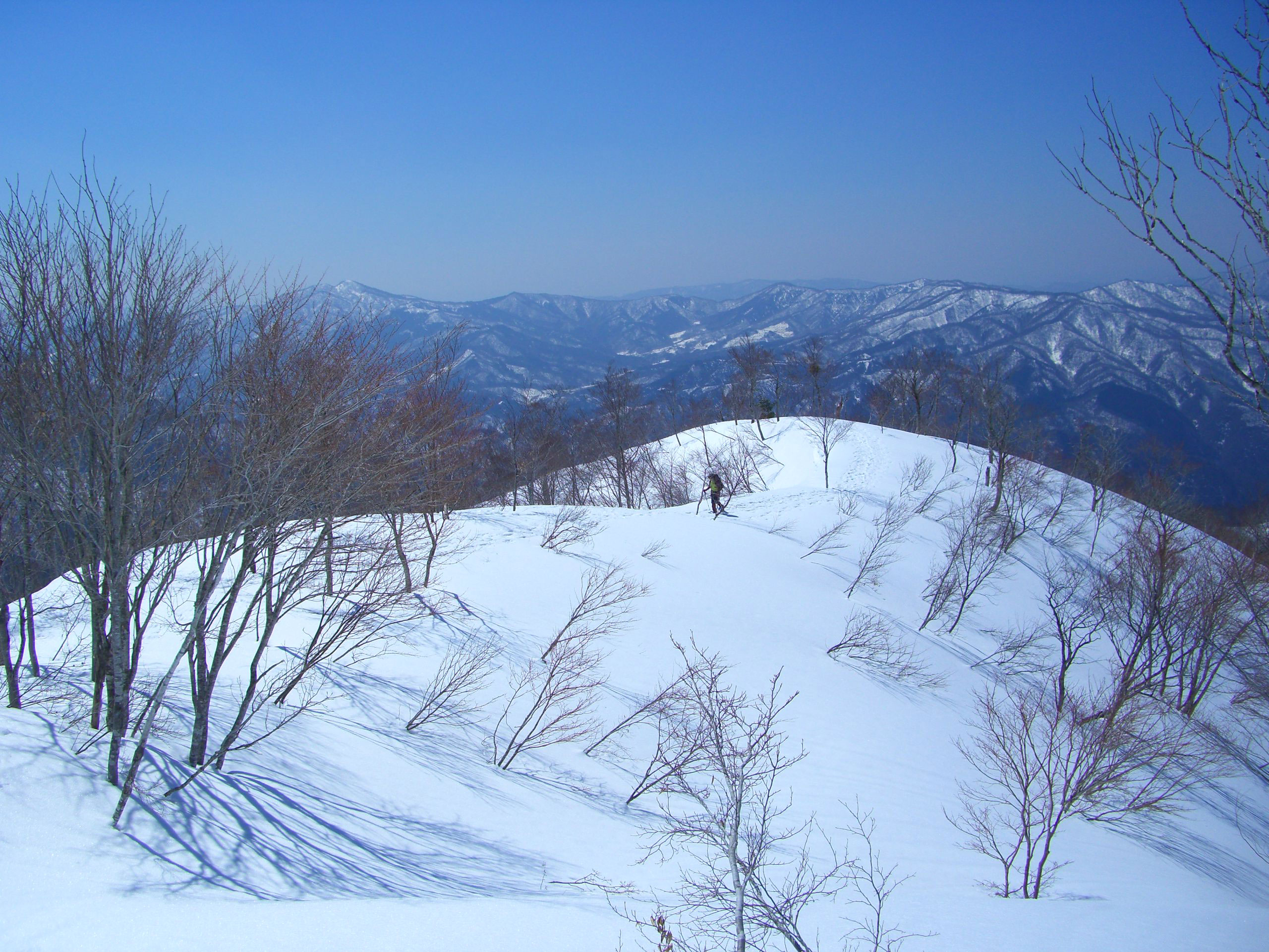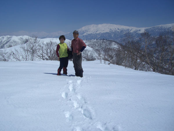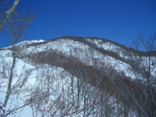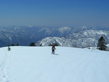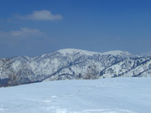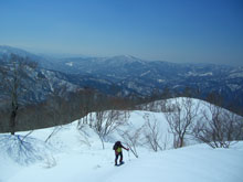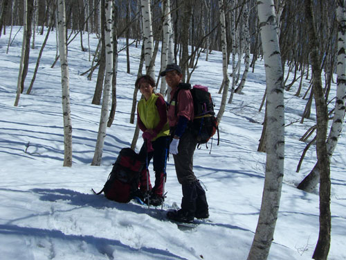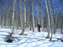 4/6 佐古からの林道歩きは予定通り。大多和の取り付きから、1000m付近まで雪がなく、また、白樺林直下の斜面も雪がない。しかし、その先は、真っ白な雪上と、真っ青な空が待っていてくれた。
