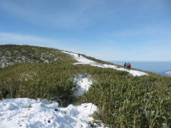 中ノ池からは、何と表現したらいいのか分からないが、小沢のようなとでも言えばよいのか、それとも浅い沢と言った方がいいのか急登が続くのである。ここに1m超える雪量があったら、カンジキを履いた足を上げても、それこそ滑り落ちて来て、単独行では泣きたくなる所である。