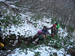 葉は落ちていても、樹木に纏わりついている雪に加えて、北斜面であるからか、だんだんと陽が高くなっていくはずであるが、暗く「陰」の世界に入って行くようでもあった。