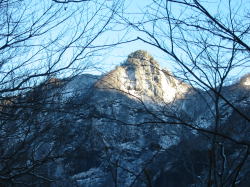 薬師尾根の「難所の覗き」までは、0~5cmくらいの積雪しかなかったが、今朝の冷え込みで岩がツルツルになっており、慎重に行動しなければならなかった。