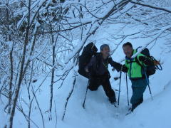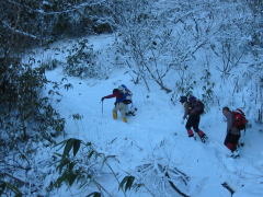 先に降りた「シュンちゃん」と「花じい」は、勘所で待機し、滑りやすい所では、カッティングをしてくれてスムーズに降りる事が出来た。