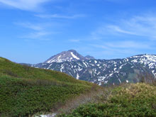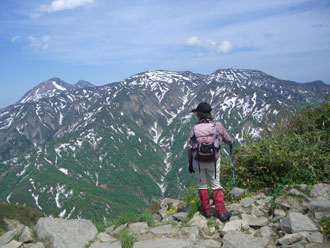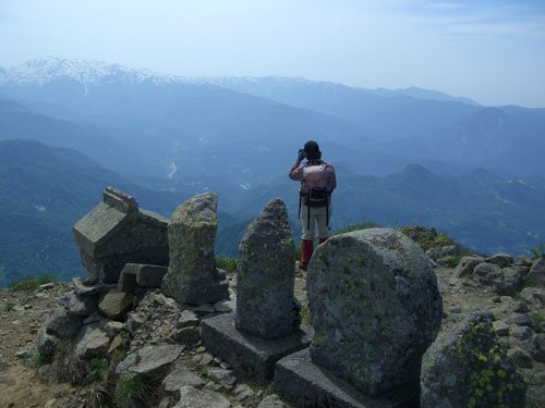 | 山頂から、遠くに焼山・火打山を望む |