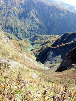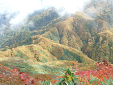 | 下山時、荒菅沢を越えた高台から・・・ 「山ノ神」は、紅葉どころではなかったハズ・・ |