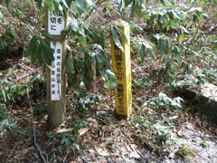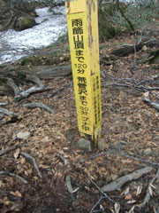荒菅沢まで30分、 山頂まで120分の標識。 |