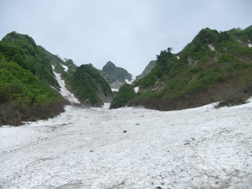 | 荒菅沢は上部まで雪が連なっていた。 |