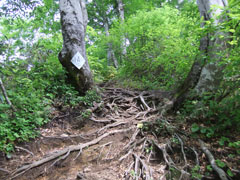 気を取り直して、小谷側の登山口に移動する事にした。しかし、大幅のロスで計画の練り直しである。歩きが順調で、この分なら、2時間半くらいで山頂に立てるのではないかと思っていたのであるが、ブナ平を過ぎた所から、ルートを外してしまった。