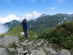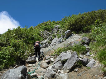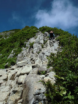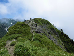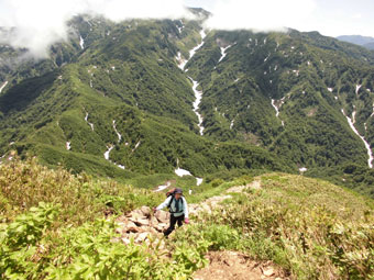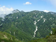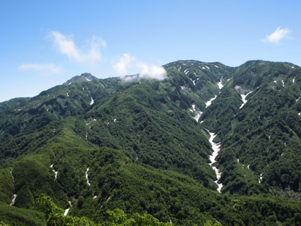 | 荒菅沢へ降りる前に、山頂付近を望む。 |