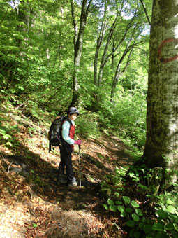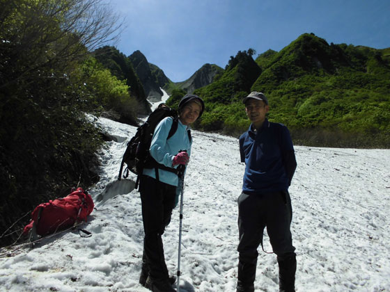 それでも、ススダケやコシアブラに目が奪われ、斜面を目の当たりにすると、ウドはないかとなってしまった。大量の残雪で埋まっていた荒菅沢でも、休もうとしなかったし、これなら、コースタイム以内で行けると思ったが、最後の岩場の登りで息が尽きたようであった。