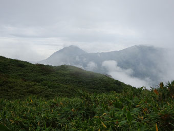 ガスっていたが、一瞬、焼山が現れた。 |