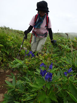 あの事故以来、山頂には行きたがらない「山ノ神」であるが、今回も、さっさと諦めて、笹平で、強風化の中、お花(トリカブトとオヤマリンドウ)を撮っていたらしい。(でも、本来の目的である冷たい物を飲んでいたらしいが、私は、そのような光景は目の当たりにしていない。)