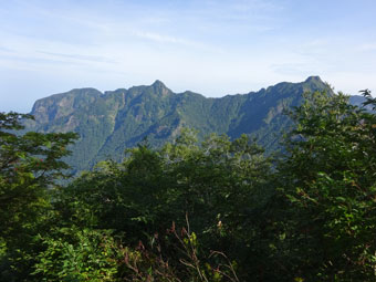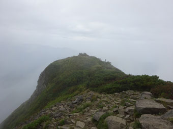 北峰から山頂(南峰)を眺める。 |