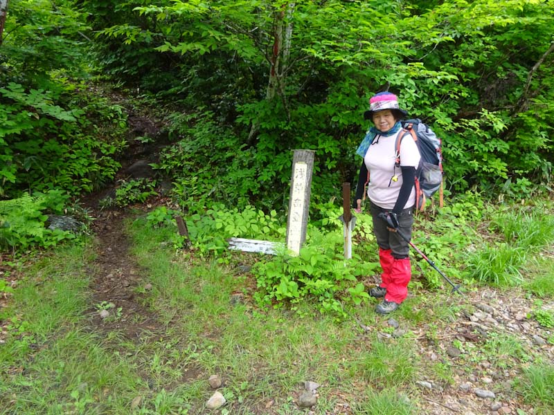 | 稜線に出てホッとしていました。 | 前岳は、桜ゾネ登山口との合流点です。 |