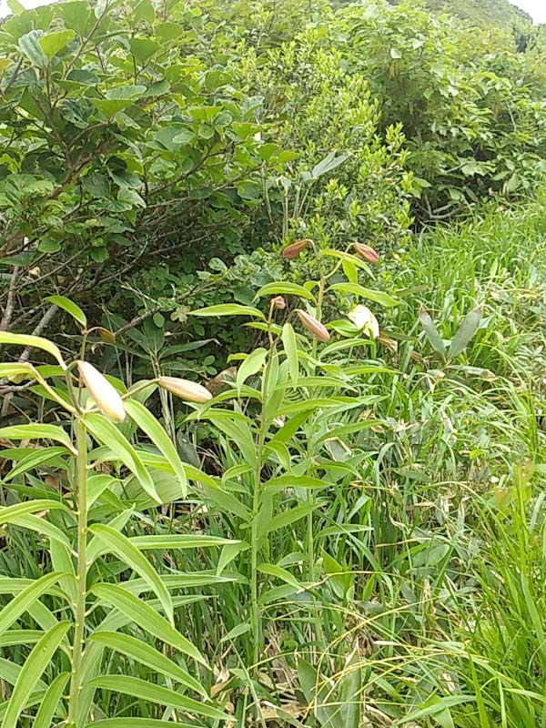 | 大きな雪渓が有りました。 | ササユリは、まだ蕾です。 |