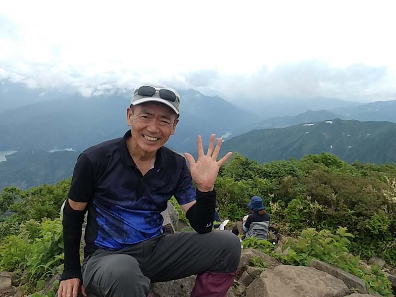| 田子倉湖をバックに浅草岳山頂にて・・・ |