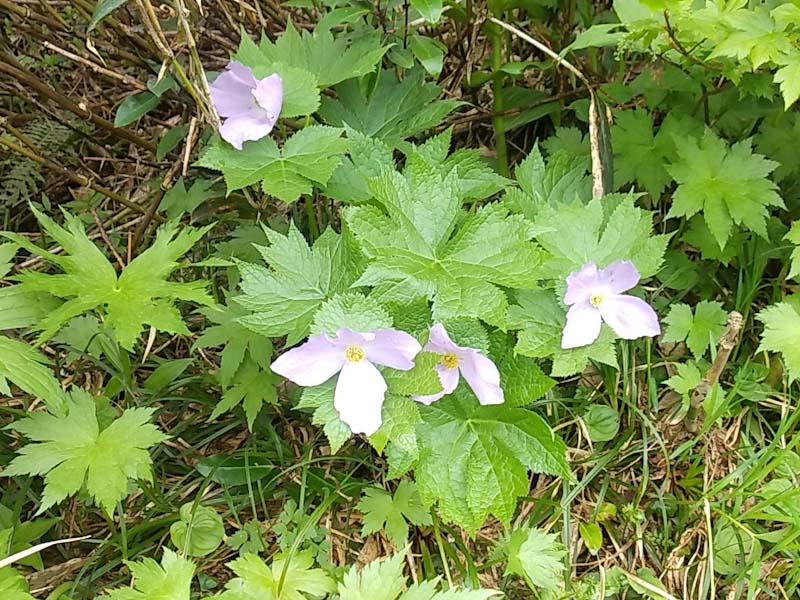| 後方は、浅草岳山頂です。 | シラネアオイが咲いていました。 |