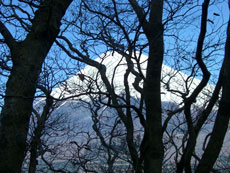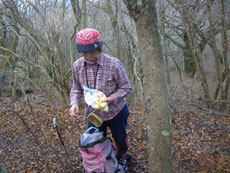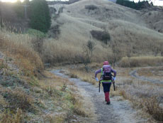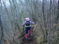 葉が落ちて見通しの良い登山道。 |