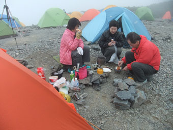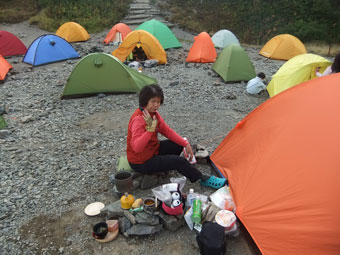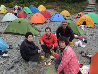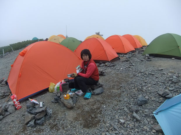 | 蝶ヶ岳山頂付近のテン場にて・・・ |