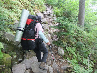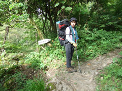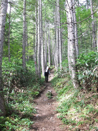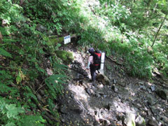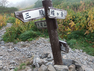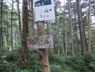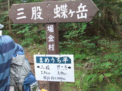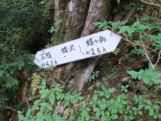 | 三股まで4キロ、蝶ヶ岳まで2・5キロ(蝶沢) | 蝶沢での休憩を終えて・・・ |