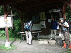 登山口手前で登山者カードの提出。 |