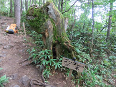 | 橋を渡って10分過ぎに 「力水」 | 「ゴジラ」 みたいな木。 | 本当に「ゴジラ」のようだった。 |