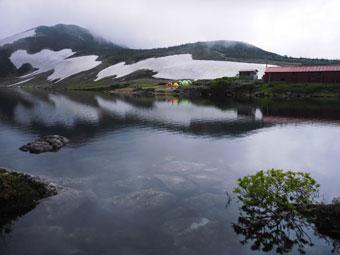 「そんなのでは、白馬岳の良さが分からない。」 「若くないし、タイムトライアルでもないのだから・・・」 などと、勝手な言い訳を作って、白馬大池キャンプとした。また、「山の風景は、朝夕にある。」 「のんびり、お酒をお飲みながら・・・」 幾らでも理由付けが出来る。