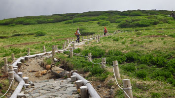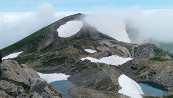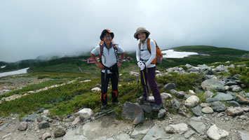 平瀬登山口(白水湖)5:55=大倉山7:55=室堂(10:10~50)=白山頂上(11:30~12:40)=室堂(13:05~50)=大倉山(15:00~05)=登山口16:25