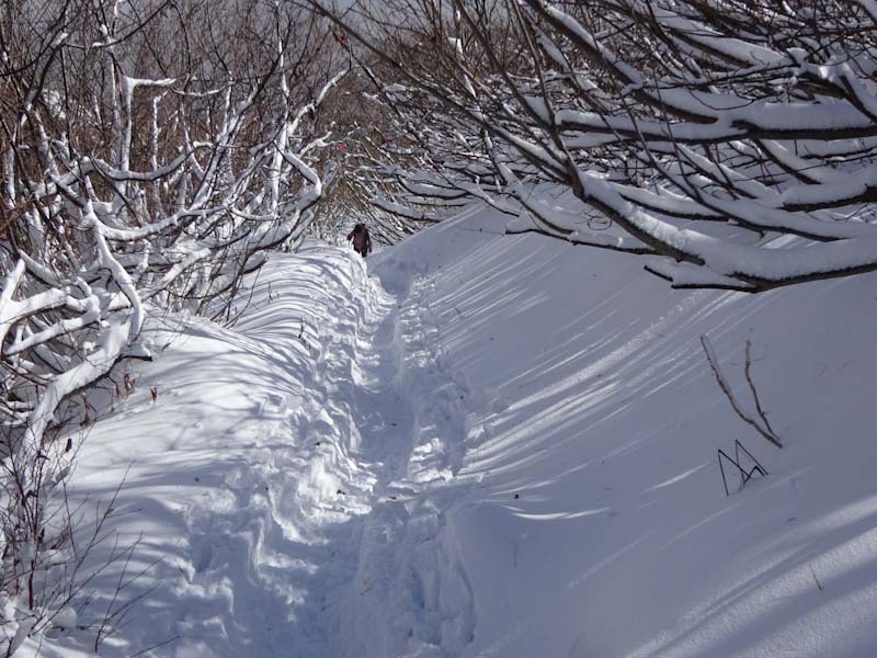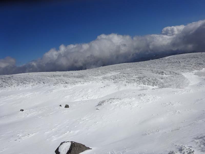 そんな「山ノ神」であったが、「もう少し行ってみる。」 と言うので、大倉山から、カンクラ雪渓までは行けなかったが、その近くまで行ったのが正午頃であった。私が上まで行きたい事を知っている「山ノ神」、「もう少し行ってきたら・・ でも、早く戻って来て・・」 と言い残して避難小屋に戻って行った。