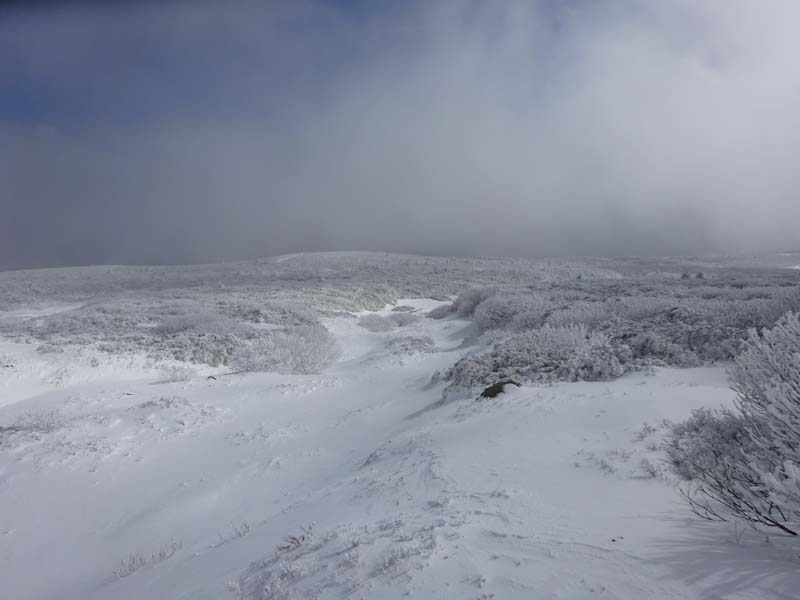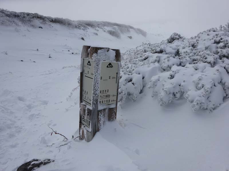何とか室堂までの思いを抱いて突き進んだが、ハイマツに阻まれたり、ところによっては、膝まで沈んでしまい喘ぎ喘ぎとなってしまった。時折、パーッとガスが晴れるが、あっという間に視界不良になってしまう状態。先行者はいたのであろうが、私の視界には誰もいない。