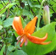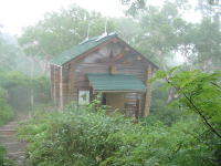 ニッコウキスゲをゆっくりと見る事もなく、帽子と傘を抑えながら大倉山の標識から100m下った避難小屋に駆け込んだ。