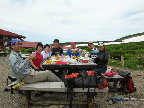 | 甚ノ助小屋前で休憩 |
