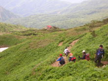 を楽しみ、宴会々場となる室堂に、クロユリなどのお花を楽しみながら降りた。