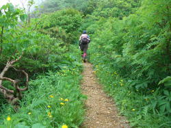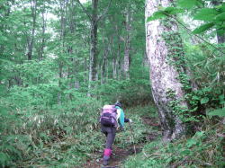 7/3 起きた時点で、雨が降ってなければ白山、降っておれば、白木峰の予定であったが、霧雨(小雨)であった。しかし、「山ノ神」の「雨でも行ってたじゃない。」 の一言で、白山行きになってしまった。