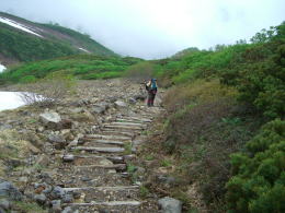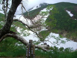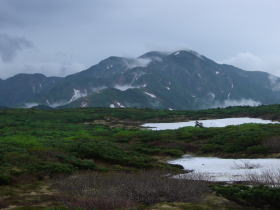 前日は、牛岳。連休の2日間とも、近くの低山というわけにはいかず、怪しげなお天気であったが、平瀬道からの白山とした。 お花には、ちょっとばかり早いような気はしたのであったが、そこは、情報収集と、ちょっとでも長い距離を歩ける事の妥協の行き先であった。