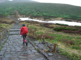 白水湖畔に行くと、「通行止のハズなのですが・・」 などと売店(避難小屋)の方が、怪訝な顔付きで、車に近づいて来られた。「私達は、通行止が解除になったから来たのですよ!」 と正当である事を告げると、今度は、「今日の予報も雨で、いつ通行止になるやも分からない。一旦通行止になると、何時解除されるか分からない。そのつもりで登山せよ!」 との脅しまで付いた。