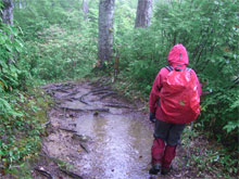 9/21 午前3時過ぎに起床したが、何やらいろいろの思いがあり、自宅を出発したのが5時半になってしまった。ワイパーを速くしたり遅くしたりしても、ず~っと雨。歩き始めても雨。良くないお天気なのに、数多くの車が駐車していたと思っていたら、途中断念した人達がドンドン降りて来る。