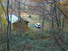 葉が落ちて大倉山避難小屋が見える。 |