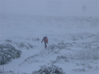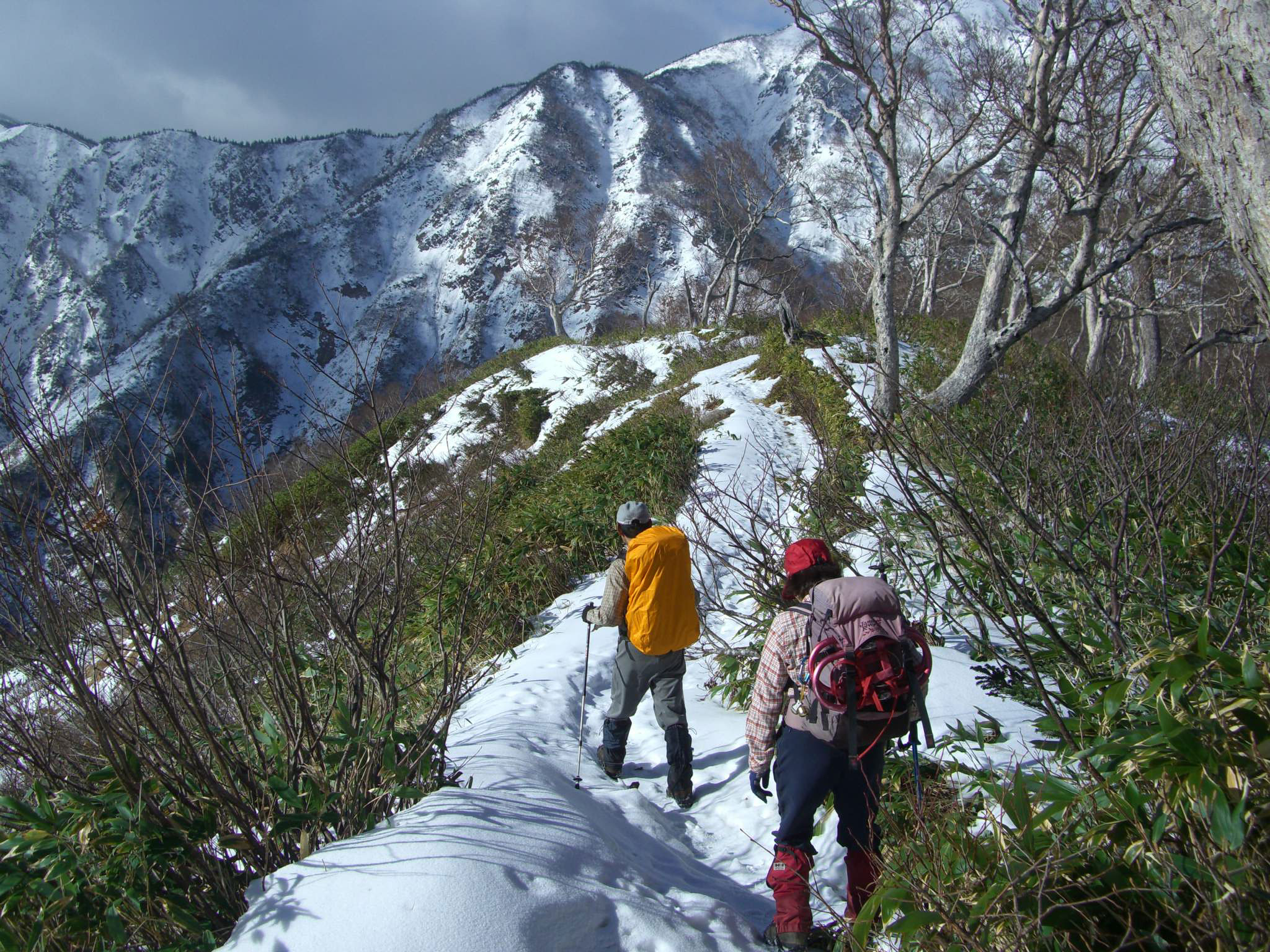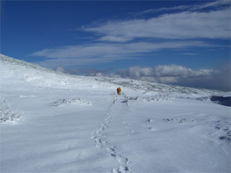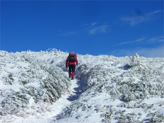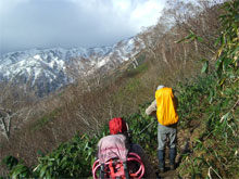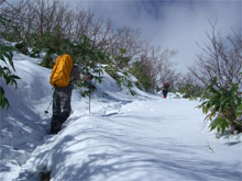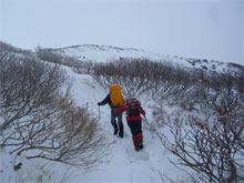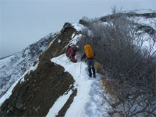 痩せた尾根を、注意深く行く。 |