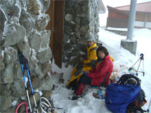 結局、室堂まで5時間掛かり、とても、山頂への意欲はなく、閉ざされたセンター前での食事となった。茂ちゃんは、寒さと空腹で、かなり参っていたようであったが、温かいカップ麺を食べてから、元気を取り戻してくれてホッとした。