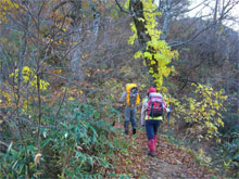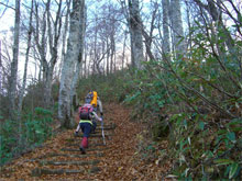落葉したブナ林の中を・・ |