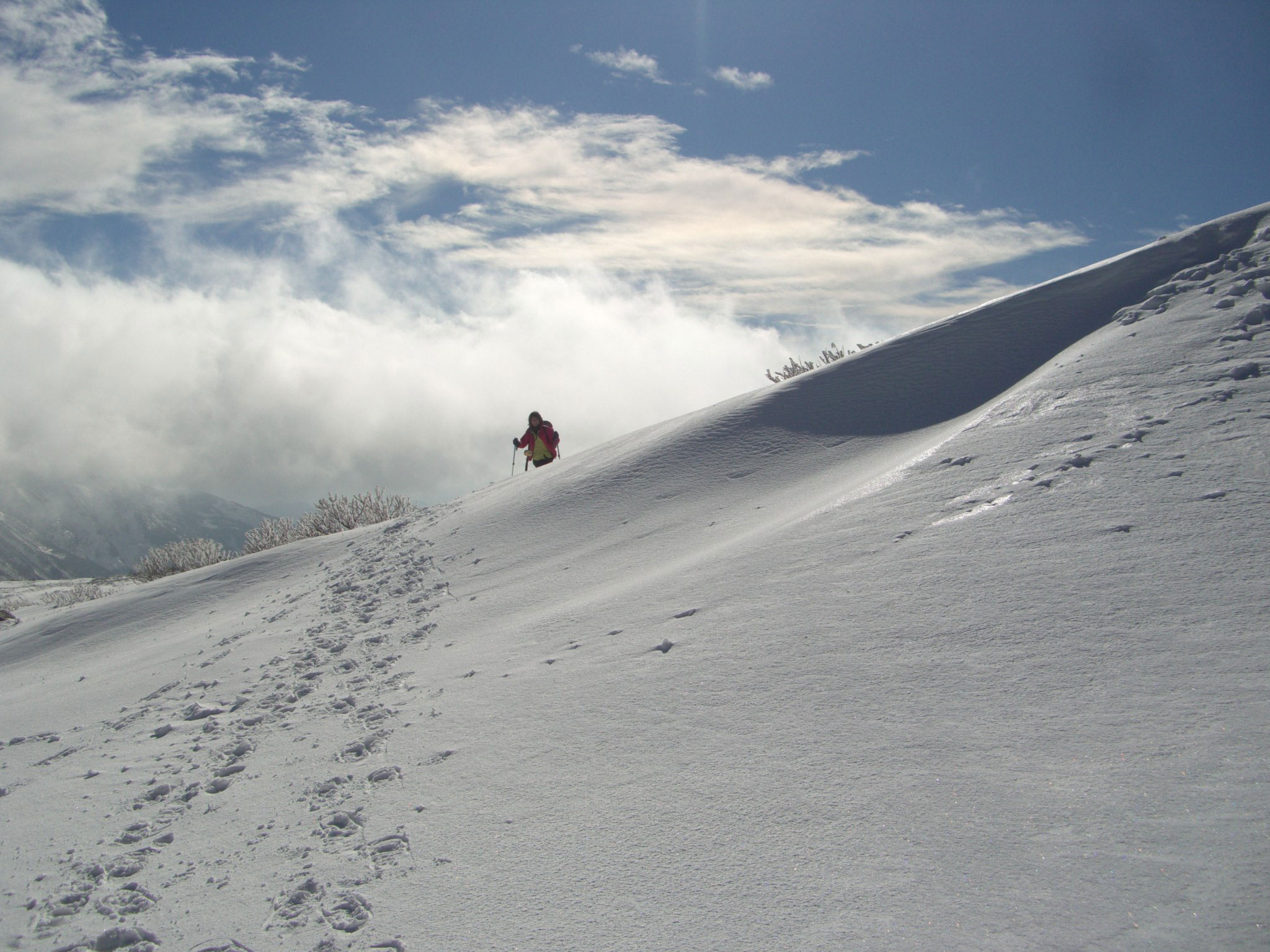 気温や風の関係で、高所の雪の状態は、平地のようではなく、「アイゼンやピッケルは、車のチェーンのようなものであり、使用する使用しないとは関係なく用意するものである。」 と、今更のように感じとったようであった。