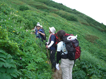 2週間前と違いお花畑の様相で、このコースは初めてという筏井夫妻は大喜び。晴天の好条件に二人のピッチは益々あがる。疲れ切ったこちらはヨロヨロと付いて行くだけ・・・ でも楽しかった。